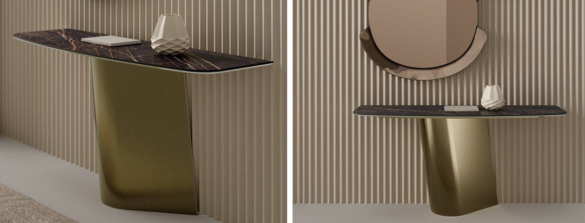 Hledáte ideální konzolový stolek pro luxusní interiér? KIMONO se postará o velkolepý efekt, nabízí vysokou variabilitu a skvěle zapadne jak do prostorné předsíně, tak do klidné ložnice. Deska ve dvou velikostech je dostupná v matném či lesklém mramoru, dubové nebo ořechové dýze. Organicky tvarovanou kovovou podnož můžete vybírat z několika laků. Tak dopřejte svému interiéru kousek, který se stane praktickým pomocníkem i stylovou ozdobou!
