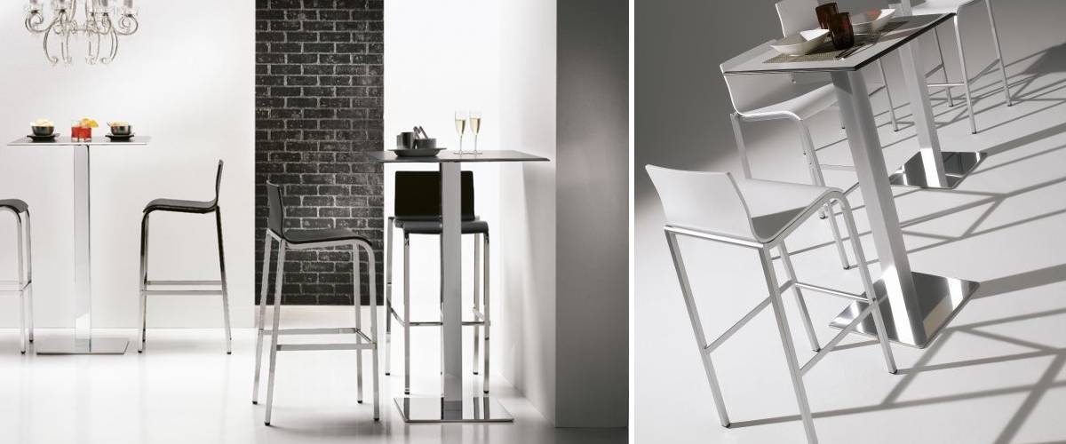 The Plano 1070 design bar table stands on a single tall central base in painted steel or chrome. The square table top is made of laminate, HPL or Fenix, which is a super-matt high-pressure laminate, and is available in several finishes. It is available in 3 sizes. This table is extremely suitable for commercial spaces such as restaurants or cafes.