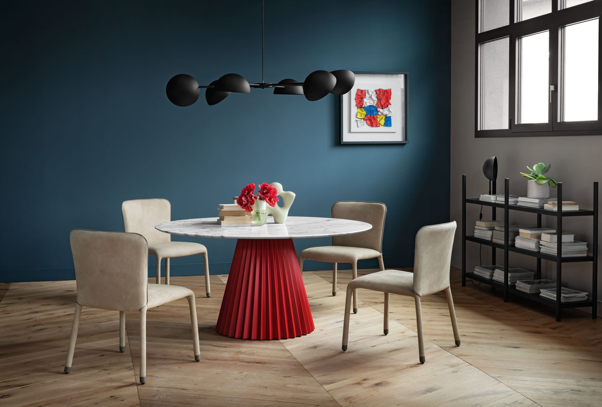 Kulatý stůl PLISSÉ, navržený designérkou Paolou Navone, je dokonalým propojením funkčnosti a vytříbeného stylu. Jeho charakteristická sochařská podnož působí jako výrazný estetický prvek, který dodává prostoru osobitý ráz. Stolová deska je dostupná v různých materiálech, což umožňuje přizpůsobení individuálním potřebám a stylu interiéru. Díky své elegantní formě a flexibilitě je kulatý stůl PLISSÉ ideální volbou pro interiérové prostory, ať už v domácnosti, kavárně či stylové restauraci. Představuje spojení moderního designu a praktičnosti, které obstojí i v náročných estetických konceptech.
