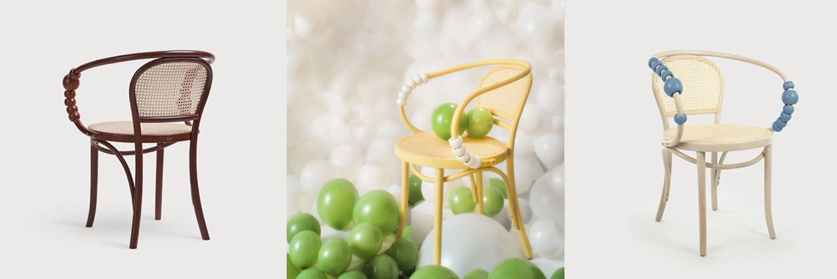 PERLINE není jen obyčejná židle – může být hračkou, meditačním místem, sochou v interiéru. Designérka Ola Mirecka ji navrhla tak, aby zapadla jak do jídelny, tak třeba do dětského pokoje. Područky zdobí dekorativní a interaktivní korálky. Konstrukce je vyrobena z ohýbaného bukového dřeva v několika dostupných povrchových úpravách, pohodlný sedák a opěrák disponují přírodním rákosovým výpletem. Pro podnož si můžete vybrat kluzáky podle svých potřeb. Tak si vyberte kousek, který přinese pohodlí a zábavu zároveň.