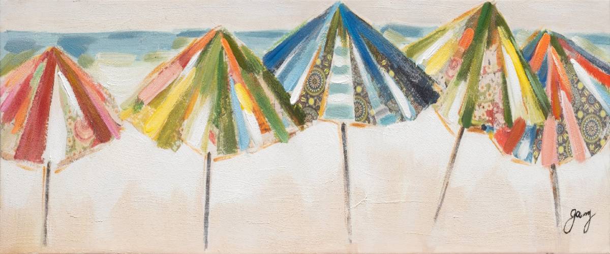 Štýlový obraz Z706 30x90 cm vás prenesie na slnkom zaliatu piesočnatú pláž. Okrem toho vás bude každý deň tešiť na stene pomerne moderného interiéru. Obrazy Bubola e Naibo ručne maľujú umelci z celého sveta. Veľké horizontálne plátno v tvare obdĺžnika zobrazuje rad pestrofarebných slnečníkov na brehu mora. Je vyvedený v odvážnych svetlých tónoch na zemitom svetlohnedom pozadí, ktoré v priestore nádherne vyniknú. Pozoruhodné sú aj jemne plastické povrchové textúry , ktoré dodávajú obrazu autentickosť. Vpustite do svojho domova alebo kancelárie umenie, ktoré inšpiruje a povznáša dušu. Plátno si môžete objednať bez rámu alebo s rámom podľa vlastného výberu z katalógu.