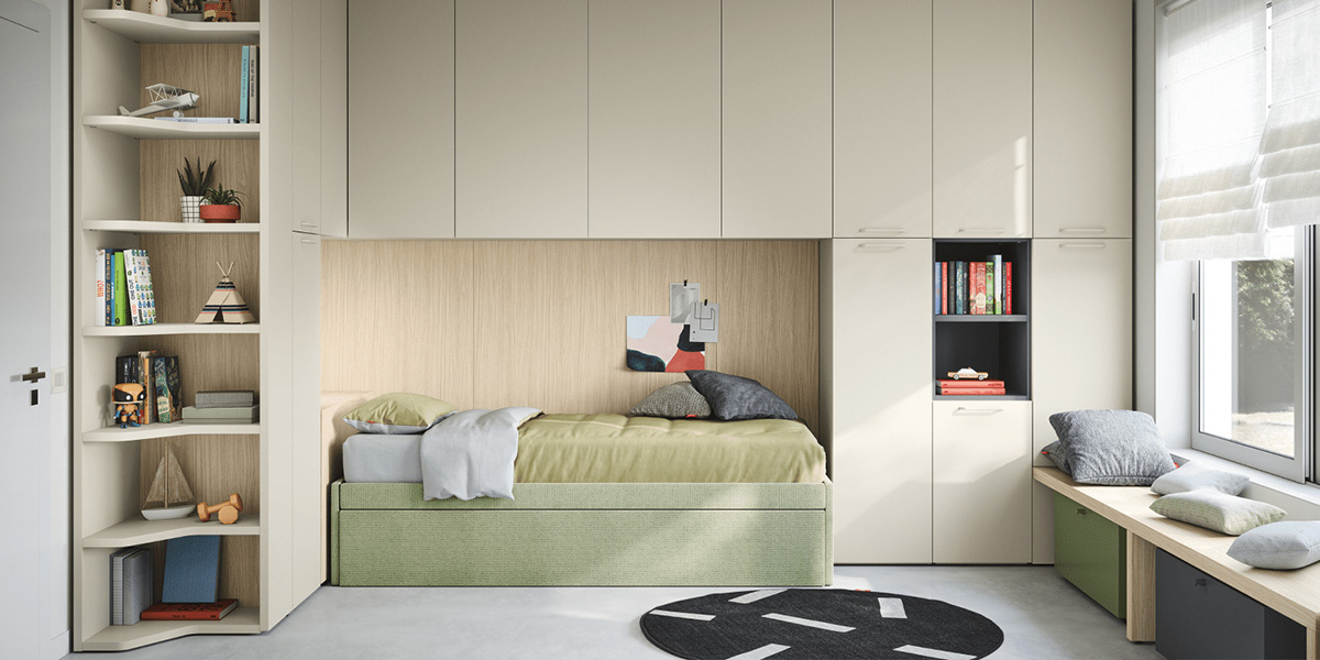 Izba je miestom, kde sa deti hrajú, snívajú, učia sa nové veci a budujú svoju osobnosť. Dokonale zladená zostava nábytku KIDS SPACE 14 bola zostavená tak, aby každý kúsok dával zmysel a vytvoril miesto pre rast detí vo veku 8-12 rokov. Kombinácia svetlého dreva, neutrálnych tónov sivej a béžovej s modrými a zelenými akcentmi bude dokonalou kulisou.