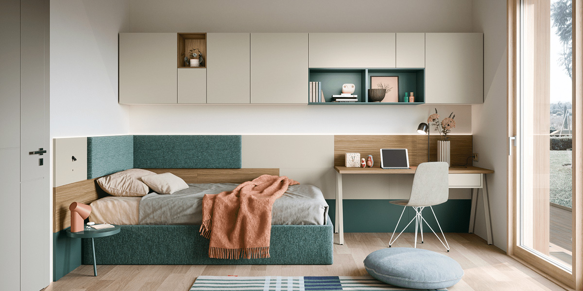 Tínedžeri potrebujú svoj vlastný špeciálny priestor. Už vedia, čo chcú, a postupne si budujú svoje veľké plány do budúcnosti. Potrebujú miesto nielen na spanie a učenie, ale aj na skúmanie, experimentovanie a zdieľanie. Dokonale zladená súprava nábytku KIDS SPACE 19 bola zostavená tak, aby každý kúsok dával zmysel a vytvoril miesto pre deti vo veku 13 až 16 rokov, kde môžu dospieť. Kombinácia svetlého dreva so sivou, béžovou a zelenou farbou bude dokonalou kulisou.
