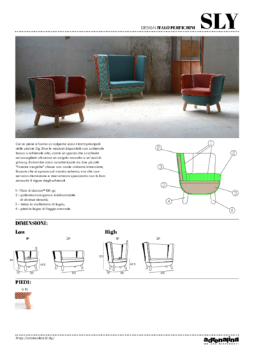 ,,Emoce nám umožní zavřít oči a představit si perfektní svět. Buďte vizionáři, dívejte se dopředu a dívejte se kolem." To je citát designéra celé kolekce Itala Pertichiniho. Naslouchejte svým emocím a udělejte si radost kouskem z kolekce SLY od italské značky Adrenalina. Kolekce obsahuje sedačky a křesla ve dvou variantách - s nízkým nebo vysokým opěrákem.