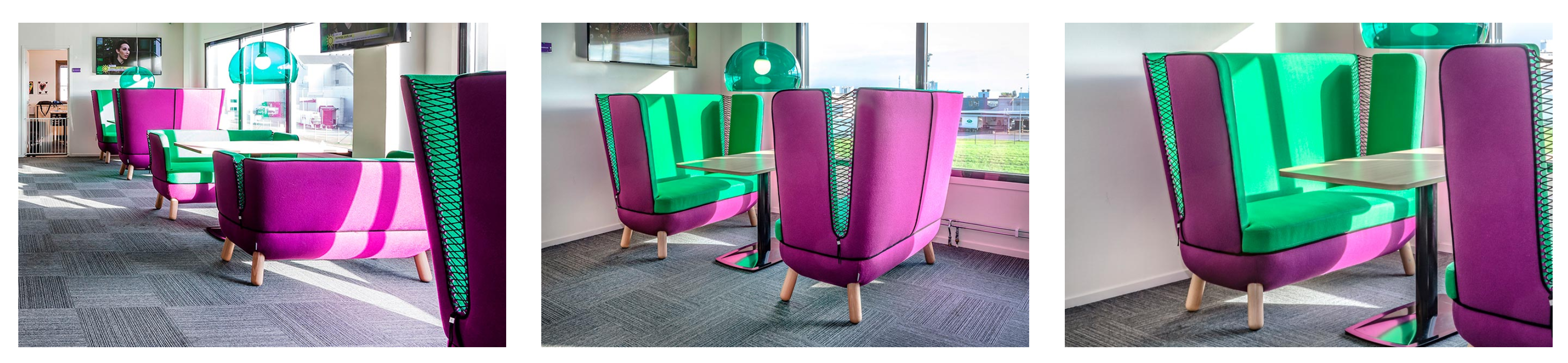 SLY bortí předsudky o nudném kancelářském nábytku. Vsadila na něj například švédská firma, která si originálními barevnými kousky vyzdobila své lobby.