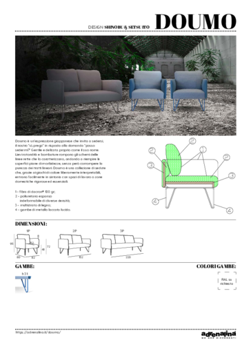 Kolekce Doumo je jemná a delikátní. Mírná zaoblenost jejích tvarů rozbíjí přínost přímých čar, barevná provedení zase dodávají veselost. V kolekci najdeme křeslo a sedačku, které se díky svému přívětivému designu spolu s originálními barevnými kombinacemi budou skvěle vyjímat doma, ale i v komerčních prostorách.