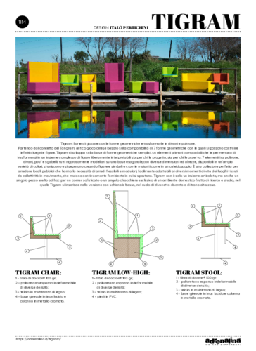 Kolekce Tigram italské značky Adrenalina představuje umění hrát si s geometrickými tvary a přeměňovat je na pohovky a křesla. Kolekce byla inspirována konceptem tangramu, starověké čínské hry založené na modularitě 7 geometrických tvarů, se kterými lze vytvářet nekonečné kresby a postavy. Stejně tak Tigram, který se skládá z geometrických modulárních prvků můžete poskládat podle své libosti a vkusu do nespočtu kombinací. Kolekce obsahuje celkem 7 prvků - křesla, sedacích soupravy, pouf a stoličku. Všechny kousky, které jsou jinak různých výšek a barev spojuje zajímavý detail - šestihranný podstavec.