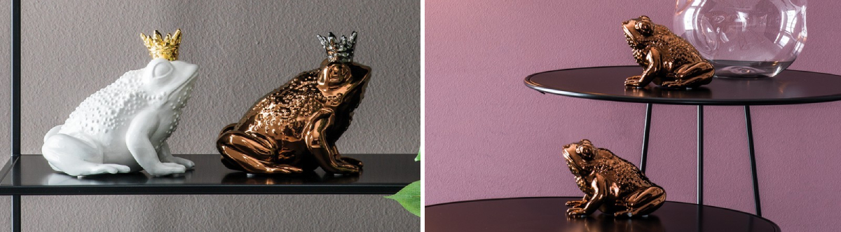 Pokud si potrpíte na originalitu a hravost, soška Queen Frog bude pro vás tou pravou dekorací. Ozdobit s ní můžete poličku v obýváku i noční stolek. Je vyrobena z odolné keramiky a k dostání je v několika barevných verzích. Tak se ponořte do světa fantazie a dopřejte si stylový doplněk. K dispozici je i varianta s korunkou.