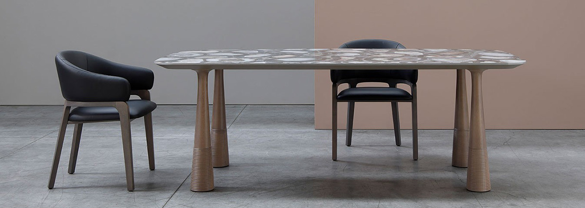 Designér Gian Paolo Venier vtiskl jídelnímu stolu FRESIA podobu sochařského objektu, který zaujme svou lehkostí i dynamikou. Kuželovitá podnož ze soustruženého jasanového dřeva v několika dostupných odstínech vytváří dojem harmonie a stability zároveň. Na kontrastu křivek a pevné konstrukce vyniká keramická deska ve světlém nebo tmavém dekoru, která se snadno začlení do různých interiérů – od moderních komerčních prostor po elegantní jídelny s vytříbeným vkusem.