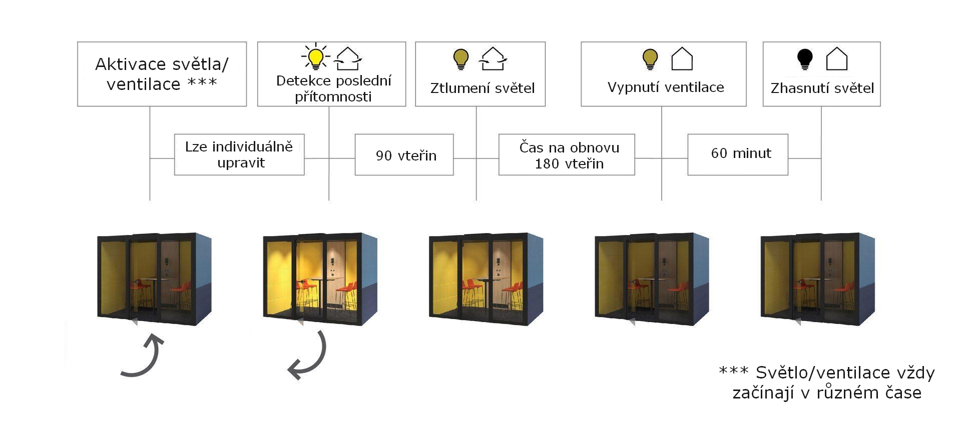 Technologická řešení, kterými je každá telefonní budka vybavena, spolu s použitím prvotřídních akustických materiálů, zaručují vynikající zvukovou izolaci. Vyspělé ventilační, osvětlovací a elektronické nabíjecí systémy umožňují naprosto pohodlný pobyt uvnitř SILENT ROOM i po delší dobu.