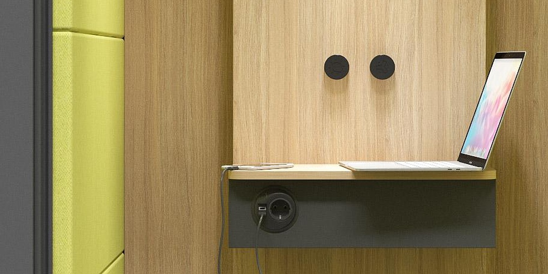 Vstup i výstup z této telefonní budky nevyžaduje větší opatrnost, a to díky nízkému prahu, jehož výška je téměř totožná s podlahou. Rozměry SILENT ROOMu zároveň zajišťují vysokou úroveň komfortu a pocit volnosti. Lze jej také snadno přizpůsobit různým činnostem. Můžete si být jistí, že budete moci pokračovat v důležité konverzaci, i když se vám v mobilním telefonu nebo laptopu vybije baterie. Pro pohodlí uživatelů je místnost vybavena elektrickou zásuvkou a konektory USB typu A a C.