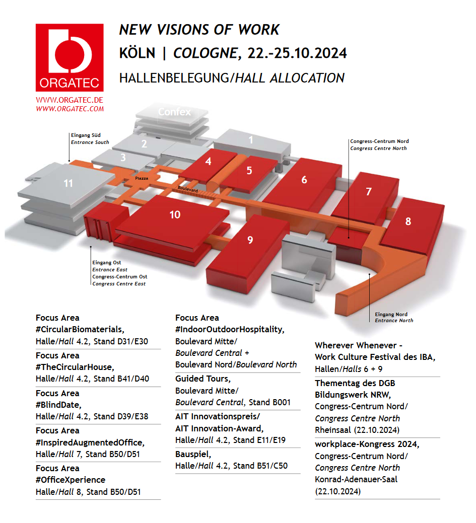 Už několik let se kanceláře, sídla firem, coworkingová centra a další objekty proměňují a reflektují neustále se posouvající dynamiku pracovního prostředí. Důraz na pohodlí, příjemnou atmosféru, balanc mezi výkonem a relaxem, zařazení pokrokových technologií i udržitelnosti. ORGATEC zanedlouho vytáhne svou pomyslnou křišťálovou kouli a předpoví budoucnost práce. Tento rok přichází v novém hávu orámovaném kratší dobou trvání, vylepšeným uspořádáním hal, zónami s obsahem pro konkrétní cílové skupiny i digitální inovaci.