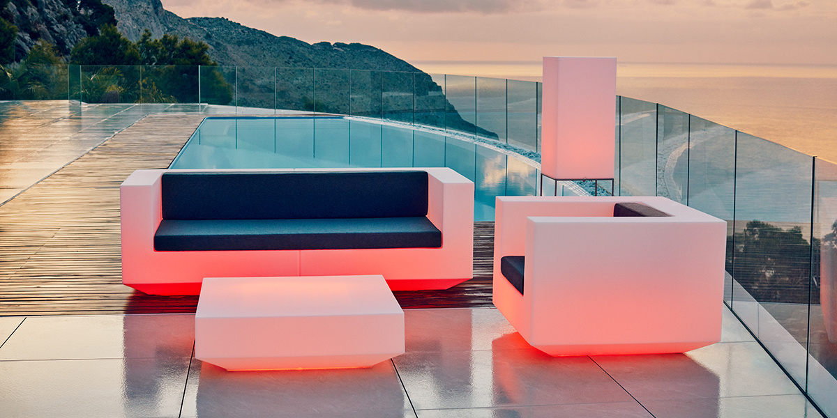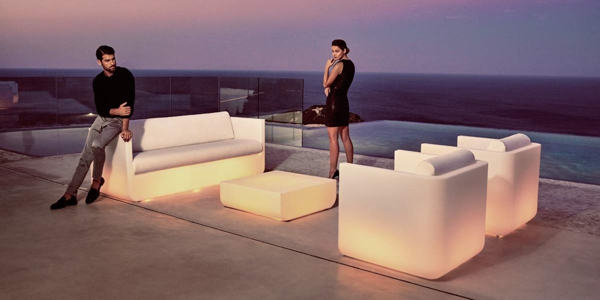Do rozsáhlé kolekce venkovního nábytku a květináčů přibyla nová pohovka. Díky elementární hranolové geometrii, kvalitě a rovnováze svých proporcí jde snadno kombinovat s ostatními prvky z kolekce, a vynikne v libovolném prostoru. Také neztrácí na původních vlastnostech, tudíž vytváří dojem, že se vznáší několik centimetrů nad podlahou, a obzvláště v souhře s osvětlením se přemění v úchvatné plovoucí dílo.