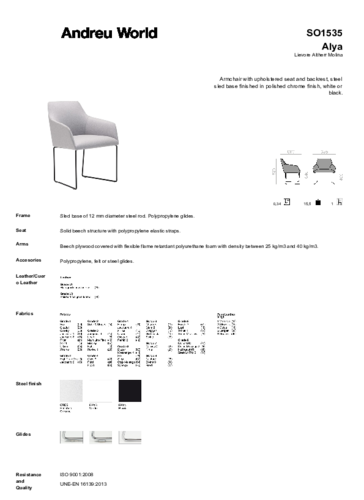 Originální křeslo ALYA vyniká jedinečným designem i širokou nabídkou barev a materiálů. Čalounění je dostupné v široké škále látek a třech variantách kůží. Možností je také využití vámi dodané textilie či kůže. Díky této variabilitě a rozmanitosti si na své přijde opravdu každý. Křeslo ALYA nikdy nezestárne nejen díky nadčasovému designu. Výjimečné je také svoji vysokou kvalitou, která je podložená certifikací výrobků do zátěžových veřejných prostor CATAS. Na výrobek také platí prodloužená záruka 5 let, můžeme ho proto doporučit i do vysoce frekventovaných veřejných a komerčních prostor. Ližinová ocelová podnož je dodávána v bílé, černé nebo stříbrné barvě či v provedení leštěný chrom.