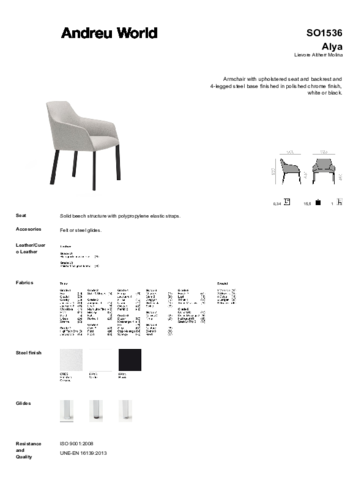 Pohodlné a velmi odolné křeslo ALYA vyniká minimalistickým vzhledem i širokou nabídkou barev a materiálů. Čalounění je dostupné v široké škále látek a třech variantách kůží. Možností je také využití vámi dodané textilie či kůže. Křeslo ALYA nikdy nezestárne nejen díky nadčasovému designu. Výjimečné je také svoji vysokou kvalitou, která je podložená certifikací výrobků do zátěžových veřejných prostor CATAS. Na výrobek také platí prodloužená záruka 5 let, můžeme ho proto doporučit i do vysoce frekventovaných veřejných a komerčních prostor. Čtyřnohá ocelová podnož je dodávána v bílé nebo černé barvě či v provedení leštěný chrom. Křeslo je k dispozici také s dřevěnou podnoží.