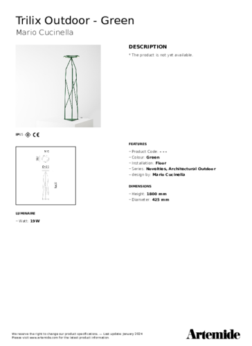 Lehká konstrukce z vzájemně propletených prvků a plochý disk s prstencem rozptýleného přímého světla. Stojací lampu TRILIX navrhl designér Mario Cucinella, aby vnesla styl i příjemné osvětlení jak do venkovních, tak vnitřních prostor. Lampa vyzařuje světlo směrem dolů, takže i když ozařuje štědrou plochu, neoslňuje. Vyrábí se v černém či zeleném provedení a odolá i nepřízni počasí. Tak zvolte designový a funkční prvek na svou terasu či zahradu.