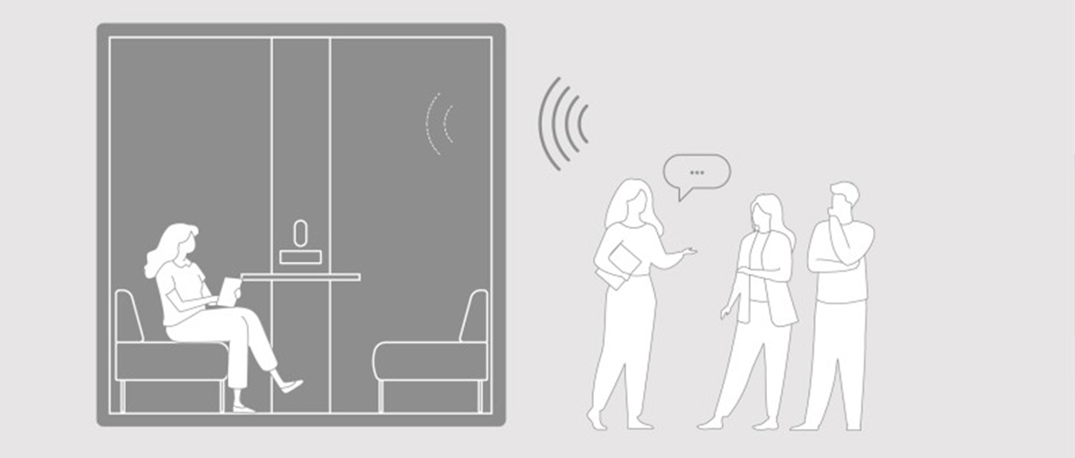 FLATHOUSE poskytuje vysoký akustický komfort uvnitř kabiny a zároveň účinně brání úniku zvuku do okolí. Splňuje nejvyšší standardy redukce hluku a zajišťuje tak plné soukromí při hovorech, videokonferencích i soustředěné práci. Vnější panely vyplněné akustickým vláknem navíc aktivně přispívají ke zlepšení celkové akustiky kanceláře – kabina se tak stává nejen místem pro schůzky, ale i funkčním zvukově absorbujícím prvkem v otevřeném prostoru. FLATHOUSE disponuje také systémem dostupnosti. Senzor automaitcky rozpozná přítomnost uživatele a rozsvítí indikátor červeně nebo zeleně.