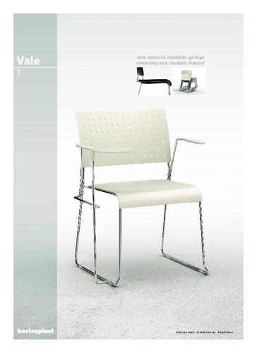 VALE T je židle s atypickými područkami a malým plastovým stolkem, která v sobě spojuje design protkaný italskými kořeny a perfektní funkční vlastnosti. Sedák a opěrák jsou vyrobeny speciální technikou vstřikovaní ohnivzdorného plastu a opěrka je ozvláštněna dekorativními dírkami. Ližinová podnož je z chromované oceli. Za příplatek si můžete pořídit spojovací systém, který usnadní rozmisťování a rovnání židlí na jakoukoli událost a zároveň je udrží na svém místě. Pro co nejjednodušší manipulaci jsou židle stohovatelné a lze si přikoupit rovněž přepravní vozík, díky kterému bude jejich přenos hračka. Židle lze objednávat po 10 kusech. VALE T je možné pořídit i s čalouněným sedákem, pro více informací nás kontaktujte.