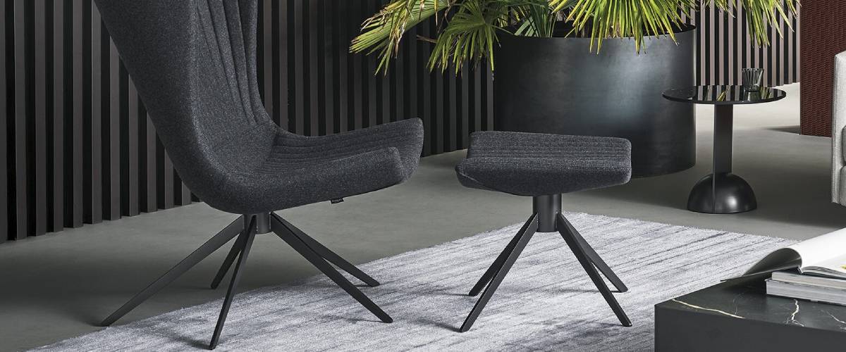 Designová podnožka COLIBRÌ je nezbytným doplňkem k otočnému křeslu COLIBRÌ ze stejné kolekce. Podnožka na křeslo stylově navazuje jak paprskovitým detailem čalounění, tak i čtyřramennou kovovou centrální podnoží. Tu si můžete dle dispozic interiéru vybrat v matných barevných lacích. Čalounění lze zvolit v kůži, kožence či textilu v rozmanitém katalogu barevných odstínů dle vaší preference. Na podnožku můžete pohodlně nechat spočinout své unavené nohy nebo ji využít jako nenáročný odkládací prostor.