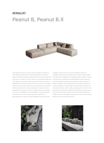 Důmyslná modulární sedačka PEANUT B je pro vás k dispozici na dotaz. Vybavte si interiér originálním kouskem, který se díky své modulární povaze přizpůsobí každému typu prostoru! Tato robustní a komfrotní sedačka stojí na skryté kovové podnoži. Čalounění pohovky nabízíme v různých typech materiálů a v barevném odstínu dle vaší volby. Vše je komfortně vycpáno měkkým pěnovým polyuretanem. Na sedačce PEANUT B se bez problému usadí celá rodina. Můžete sedět, nebo ležet, vše je dovoleno! Sedačka PEANUT B vynikne zejména v početné domácnosti. Zaujala vás modulární sedačka PEANUT B? Ozvěte se nám a naši odborníci vám poradí s její konfigurací.