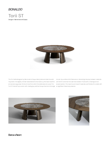 Designérské studio Marconato & Zappa se k tvorbě návrhu stolu TORII ST nechalo inspirovat japonskou svatyní, jejíž vchod připomíná originálně řešená kovová podnož ve dvou dostupných povrchových úpravách. Kulatá deska ve třech velikostech je tvořena dřevěnou částí a otočnou vložkou z keramiky v několika dekorech. Kontrast materiálů je hlavním atributem jídelního stolu, jenž se zaručeně staně nejvýraznějším aktérem ve vašem interiéru. V případě jakýchkoli dotazů nás neváhejte kontaktovat.