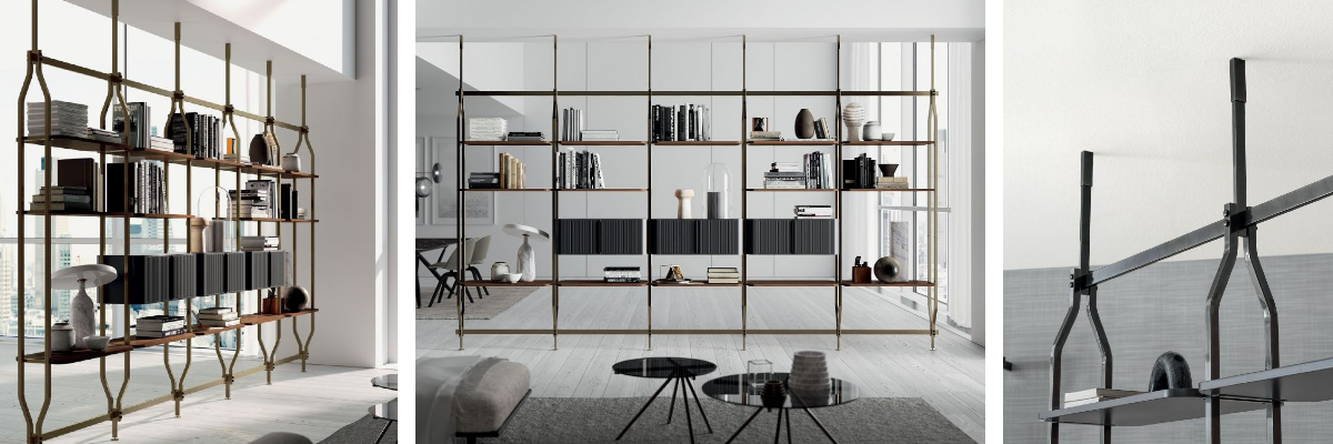 Knihovna CHARLOTTE od značky Bontempi plní skvěle nejen svoji funkční úlohu, ale i tu designovou. Díky velkým rozměrům poskytne místo pro mnoho knih a dalších dekorací. Je vyrobena z pevného lakovaného kovu. Má stropní upevňovací zařízení, a tak může jednoduše stát v prostoru a substituovat zeď. Knihovna CHARLOTTE ozvláštní každý prostor a dodá mu špetku luxusu a patřičný šmrnc.