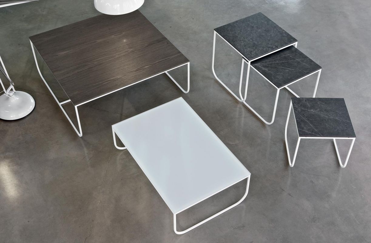 Moderní konferenční stolky TOKIO od světoznámé italské společnosti Bontempi Casa zaujmou netradiční ližinovou podnoží z lakovaného či lesklého kovu. Čtvercová stolová deska je k dispozici v několika provedeních skla, skla anti-scratch, dýhy, SuperMarble či keramiky. Tuto sadu ocení především milovníci minimalismu a jednoduchých linií. Využijete ji zejména v obývacích pokojích, nicméně skvěle poslouží i jako odkládací stolky do pracovny či do kanceláře.