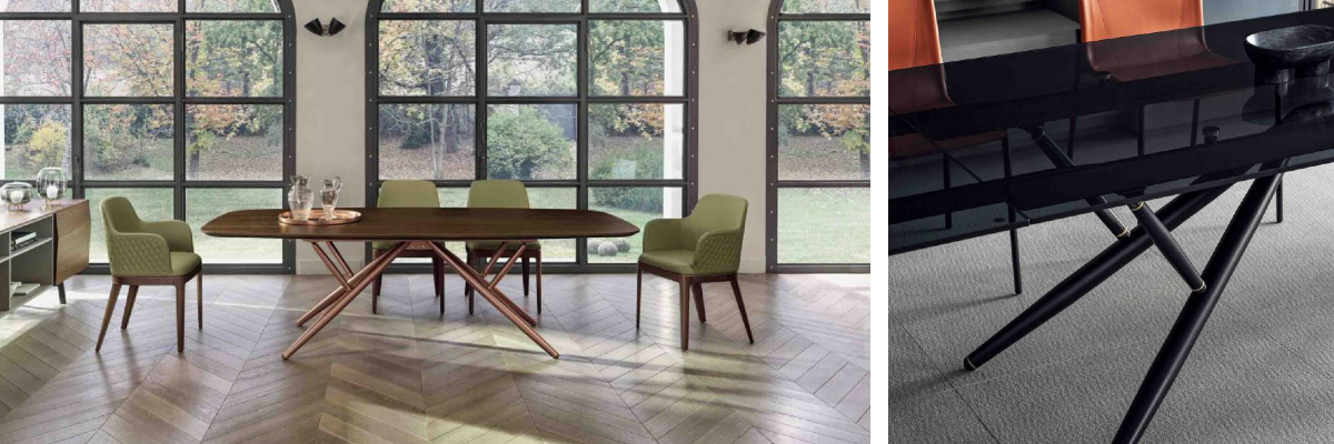 Stůl BRIDGE je luxusním prvkem od značky Bontempi, který ozvláštní každý prostor. Vyjímá se neotřelým tvarem podnože a zaoblenými rohy stolové desky. Kovovou podnož lze pořídit v mnoha lakovaných barvách, či můžete jít cestou staré dobré lesklé černé klasiky. Podnož můžete ozvláštnit kontrastními detaily a vytvořit tak naprostý unikát. Stolová deska je v nabídce z dýhy či mramoru SuperMarble v matném i lesklém provedení a je k dostání ve dvou velikostech.