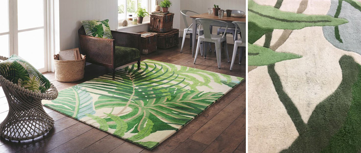Koberec Sanderson Manila s designem zelených listů je navržen tak, aby vyhovoval modernímu vybavení místnosti. Koberce Manila jsou ručně vyráběné v Indii Brinkem a Campmanem a byly navrženy ve Velké Británii společností Sanderson, aby odpovídaly jejich sortimentu látek a tapet. Hustá, měkká, 100% vlna čisté vlny je navržena tak, aby poskytovala vysokou úroveň luxusu a pohodlí. Společnost Sanderson byla založená v roce 1860 je proslulá svými ručně dělanými koberci. Vzory koberců jsou inspirovány anglickými zahradami a do interiéru přenesou nadčasovou eleganci a nádech luxusu.