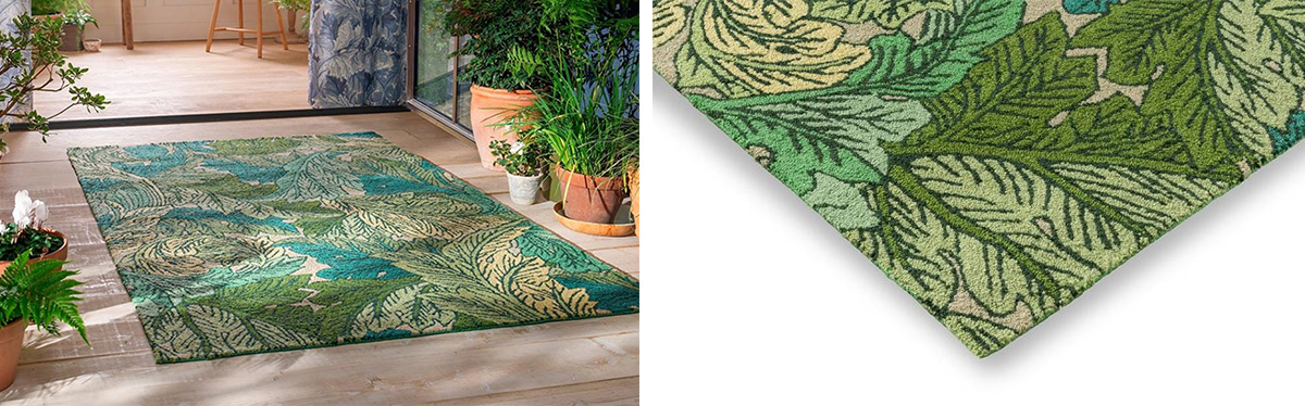 I venku můžete mít koberec, který odolává nepřízni počasí a zároveň vypadá dokonale. MORRIS & CO ACANTHUS přinese na vaši terasu tradiční motivy britského designéra Williama Morrise a navíc si poradí se sluncem i vlhkostí. Je vyroben metodou ručního tuftování ze 100% recyklované PET příze. Můžete si vybrat z několika velikostí, a koberec tak přizpůsobit vašemu prostoru. V naší nabídce najdete také modré provedení. Tak zvolte kousek s řadou benefitů, na který se zároveň skvěle dívá.