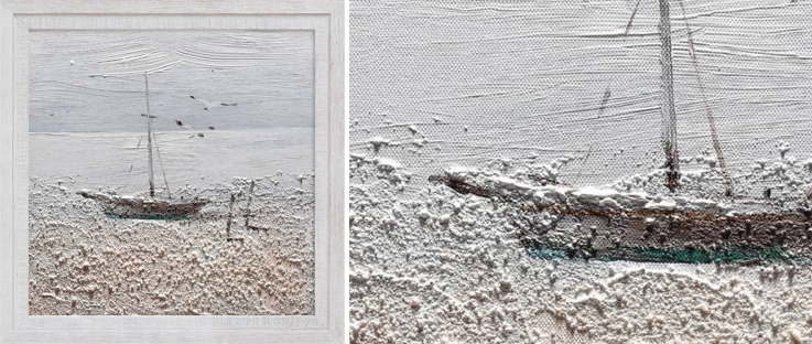 Vůně moře, křik racků a písek pod nohama, to ve vás evokuje obraz W604 30 x 30 cm. Díky svému pojetí vynikne zejména v moderně laděných interiérech. Dílo je malováno ručně na plátno profesionálními umělci, proto je každý kus originál a uspokojí tak i náročné klienty. Díky akrylovým barvám v kombinaci s dalšími materiály má obraz zajímavou strukturu s plastickým efektem. Akrylové barvy jsou známé svou stálobarevností, obraz vám tedy bude v nezměněné podobě krášlit interiér dlouhá léta. Obraz je možné objednat s různými typy rámů, které doladí váš interiér. K obrazu je přiložen certifikát potvrzující, že tento obraz je skutečný originál.