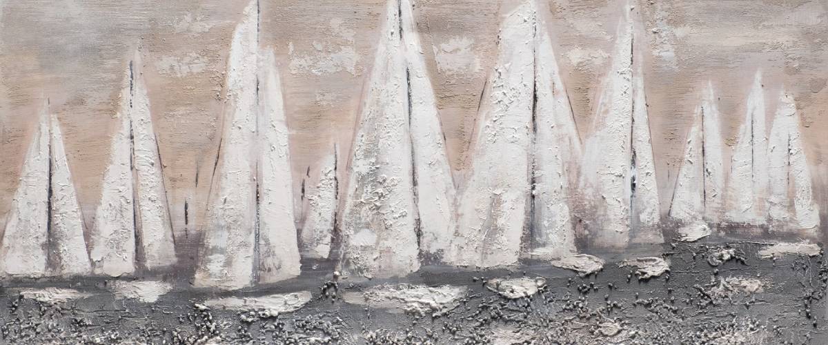 Stylový obraz W961 60x120 cm vám zprostředkuje napětí před vypuknutím závodu. Každý den vás těmito emocemi může těšit na stěně klasického nebo moderního interiéru. Obrazy Bubola e Naibo jsou ručně malovány umělci z celého světa. Plátno tvaru obdélníku zobrazuje řadu plachetnic na mořské hladině - možná čekajících na start!. Vyvedeno je v tlumených vodových tónech šedé, béžové a krémové které se vám budou v rámci prostoru nádherně ladit. Pozoruhodná jsou také jemně zrnitá struktura povrchu, díky které obraz získává na autenticitě. Pusťte si domů nebo do kanceláře umění, které inspiruje a povznáší duši. Plátno lze objednat bez rámu nebo s rámem dle vašeho výběru z katalogu.
