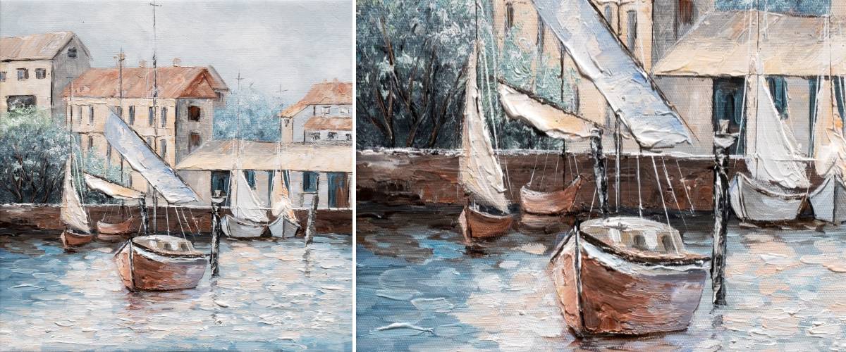 Stylový obraz W701 30x30 cm nabízí pohled, který milují všichni fanoušci středomořských městeček. Kromě toho vás bude každý den těšit na stěně moderního i klasického interiéru. Obrazy Bubola e Naibo jsou ručně malovány umělci z celého světa. Plátno tvaru čtverce zobrazuje přístav s plachetnicemi a malebnými domky v pozadí. Vyvedeno je v decentních tlumených tónech, které se v rámci prostoru nádherně kombinují. Pozoruhodná jsou také zhrublá struktura povrchu, díky které obraz získává na autenticitě. Pusťte si domů nebo do kanceláře umění, které inspiruje a povznáší duši. Plátno lze objednat bez rámu nebo s rámem dle vašeho výběru z katalogu.