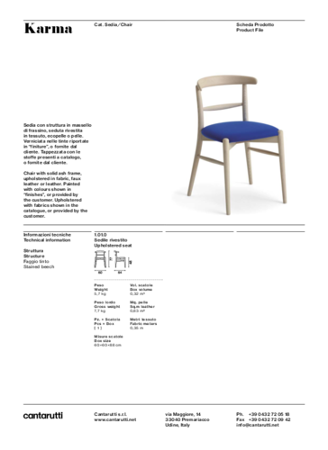 Židle KARMA se vyznačuje velkou univerzálností, a to díky svému minimalistickému vzhledu s ladnými liniemi a zaoblenými rohy. Hodí se tak do kteréhokoli interiéru. Čtyřnohá podnož je vyrobena z masivního dřeva a je dostupná v povrchových úpravách laku, anilinové barvy a moření. Vybrat si můžete rovněž z bohaté palety barev čalounění sedáku, které je k dispozici v látce i kůži. Židli KARMA si tedy můžete snadno personalizovat různými barevnými kombinacemi a vytvořit tak originální prvek domácnosti či veřejných prostor.