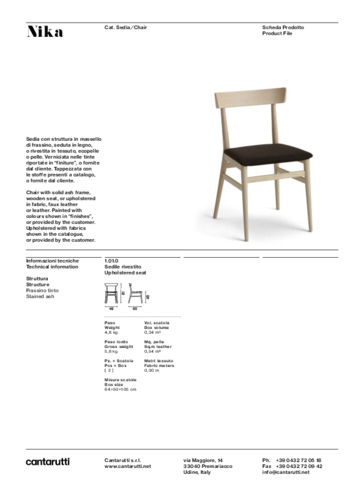 Harmonie, kvalita, nadčasovost. Těmito slovy můžeme charakterizovat židli NIKA. Konstrukce je vyrobena z kvalitního jasanového dřeva, díky kterému židle přežije několik generací. Můžete si vybrat mezi povrchovou úpravou moření a lakování. Na výběr je rovněž mnoho druhů barev a materiálů čalounění sedáku. Pakliže ve vzorníku nenajdete svoji vysněnou barvu, můžete využít rovněž vlastního materiálu. Židle se hodí do kteréhokoli interiéru soukromých i veřejných prostor. Hledáte kvalitu v minimalistickém provedení? Židle NIKA je pro Vás tím pravým ořechovým.