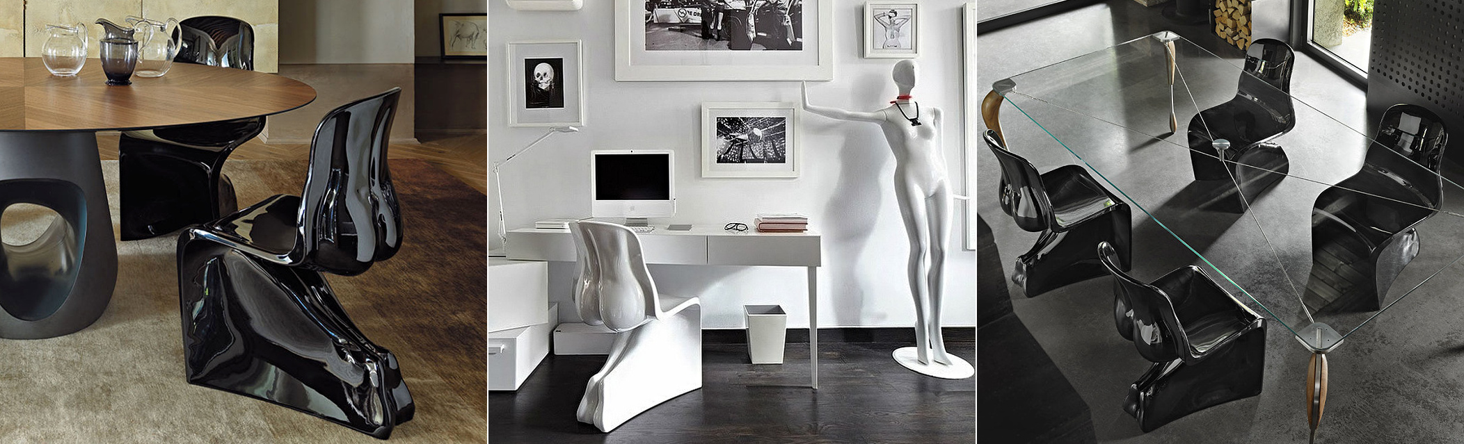 Nevšedně pojatý nábytek s trochou nadsázky, humoru a vysoké dávky kreativity a fantazie. Taková je poutavá kolekce od italského designéra Fabia Noviembra vás zaujme na první pohled. Noviembre se při její výrobě inspiroval krásou ženského těla a muskulaturou mužského těla a vytvořil tak harmonickou kolekci, která odraží obě pohlaví. Nábytek je vhodný do exteriéru i interiéru a je perfektní jako vybavení soukromé rezidence, hotelu či restaurace. Obě židle jsou vyrobeny ze 100% recyklovatelného polyethylenu.