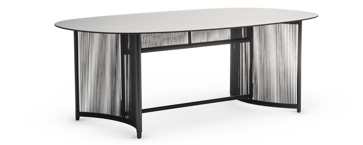 Jídelní stůl ALATNA svým vzdušným provedením evokuje letní dovolenou. Designér Antonio de Marco navrhl celou kolekci tak, aby přímo vybízela k pobytu na čerstvém vzduchu. Základ stolu tvoří kovová podnož s práškovým nástřikem v několika dostulných barvách. Výplet z námořnického lanka je ručně tkaný a jeho odstín korespoduje s odolnou HPL deskou. Tento kousek snadno odolává povětrnostním podmínkám a stane se z něj dominanta každého posezení. Stůl ALTANA je dostupný také v kulaté variantě.