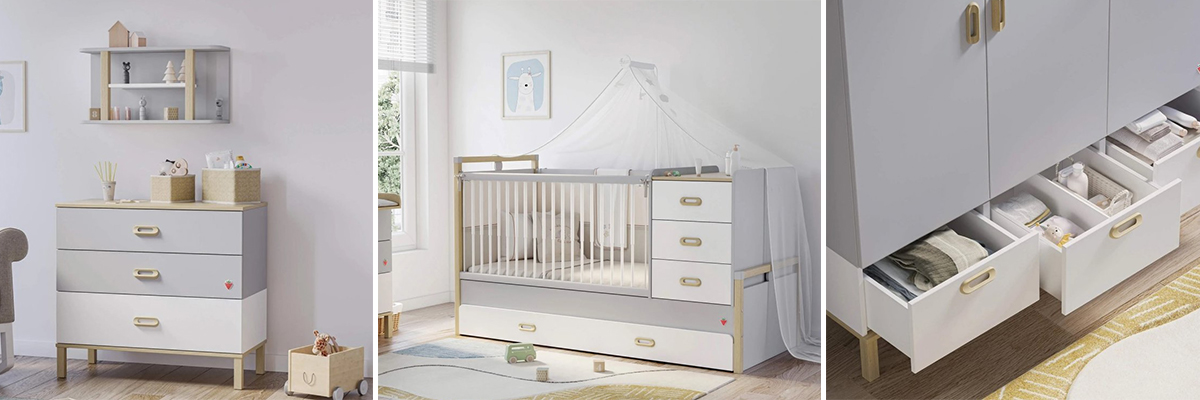 Něžná a zároveň nadčasová kolekce MINO BABY připraví vašemu miminku krásný vstup do života. Neutrální barevné provedení v bílé a šedé barvě s prvky v dekoru dřeva je ideální volbou. V kolekci najdete postýlky, přebalovací pulty, komody, skříně i police. Snadno s ní vybavíte kompletní dětský pokojíček. Kvalitní zpracování se zaměřením na každý detail je samozřejmostí.