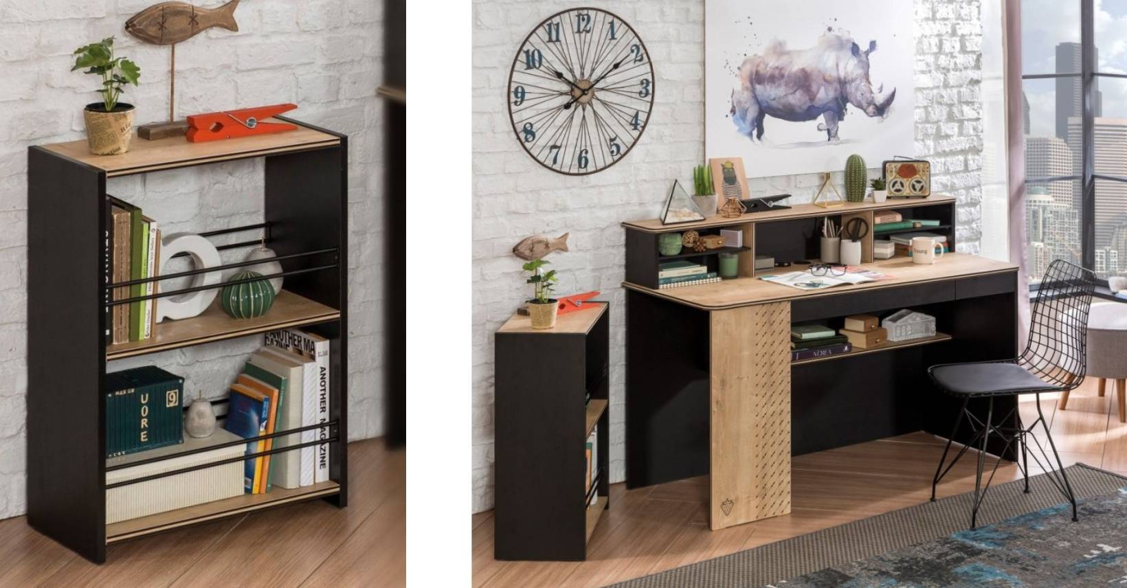 Malá knihovna nebo doplňující komponent k psacímu stolu z kolekce Black, který napomáhá rozšířit pracovní prostor. Nabízí dvě velké police pro uložení knížek, časopisů či jiných drobných předmětů a dekorací.