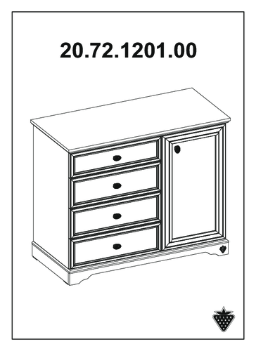 Šatní skříň z kolekce je vybavena oválným zrcadlem z vnější strany středových dveří a prakticky rozdělena na šatní, policovou a zásuvkovou část. Samozřejmostí u všech kousků nábytku s dvířky je tlumení dorazu zásuvek i brzda pantů u dveří skříně.