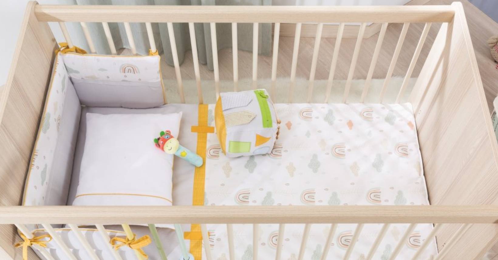 K postýlce pro miminko vám zaručeně nesmí chybět i set lůžkovin Smile, který obsahuje ochranné mantinely. Pohodlně je uvážete na tkaničku.