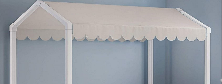 Designová béžová markýza k posteli domeček
