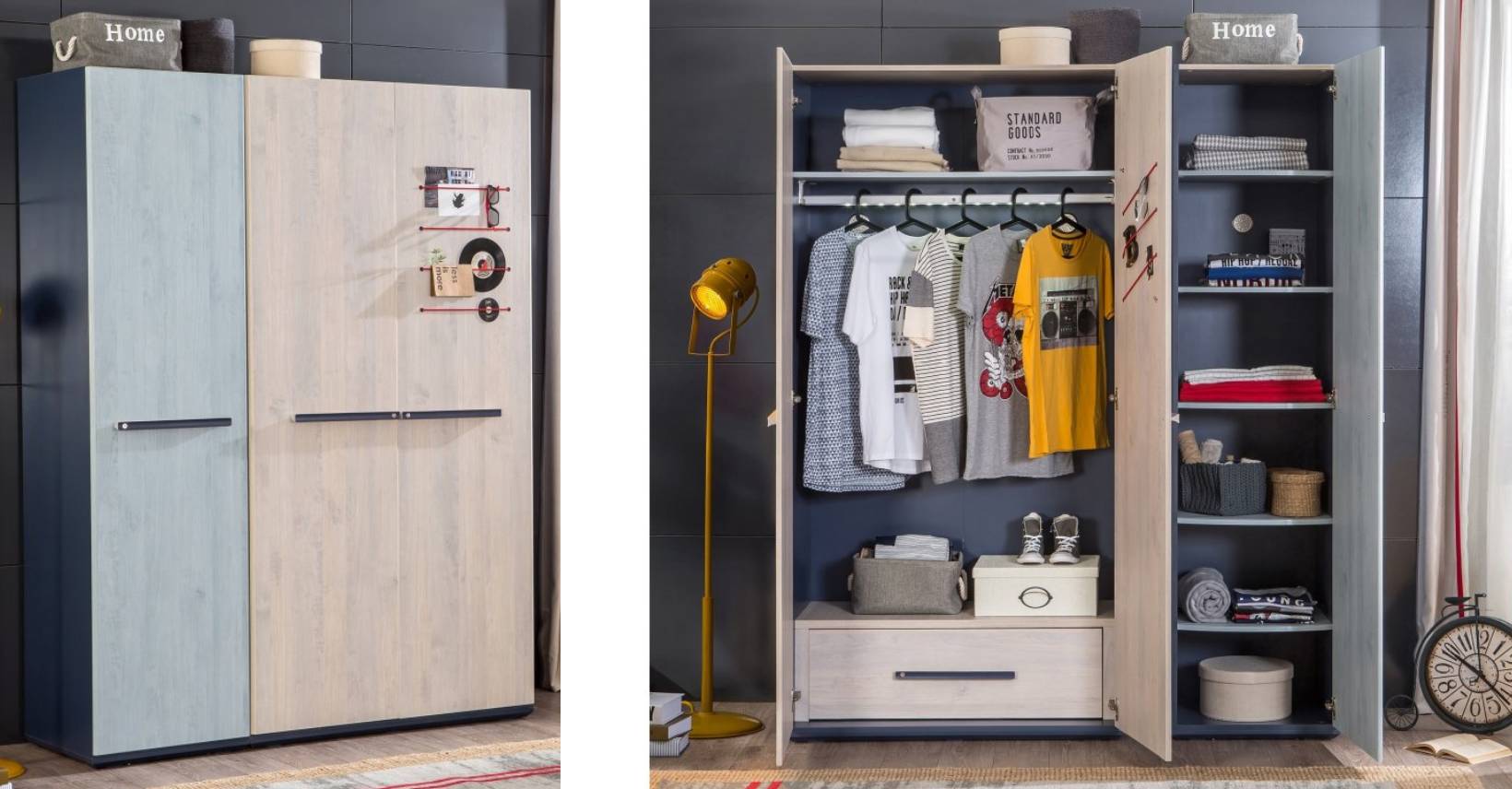 K otevírání skříně slouží široké výrazné madlo. Pneumatické brzy pantů zajišťují tiché a bezpečné zavírání dvířek. Tento produkt doporučujeme ještě rozšířit například o dvoudveřovou skříň, vnější věšák na oblečení nebo skříňku z kolekce TRIO!