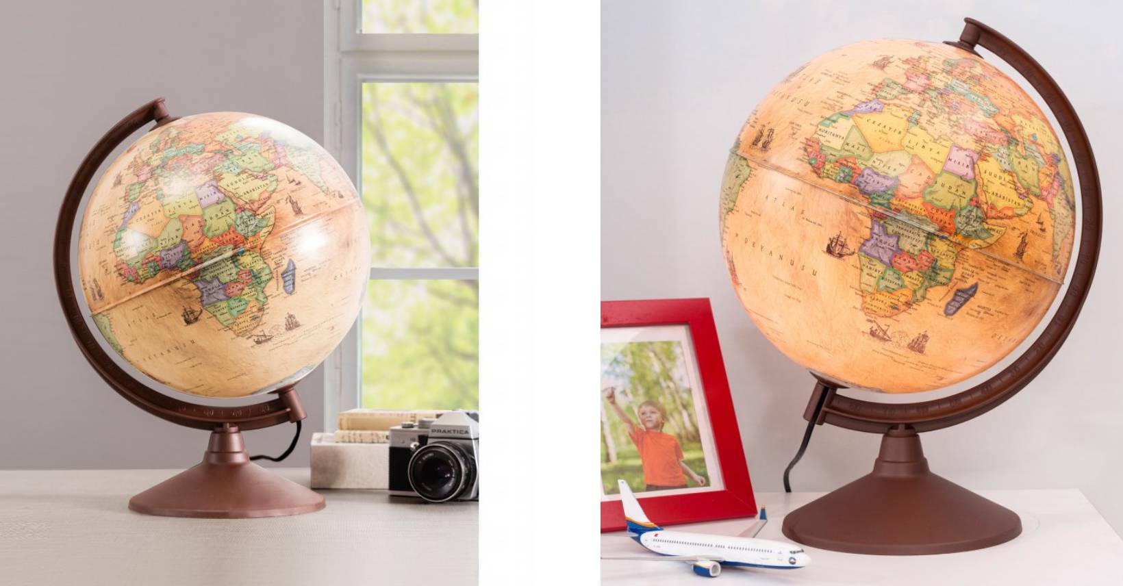 Dekorační stolní lampa GLOBUS je krásným i praktickým doplňkem do dětského pokoje. Nejen že hezky vypadá, poskytne dostatek světla, ale poslouží i jako učební pomůcka pro domácí úkoly z dějepisu.