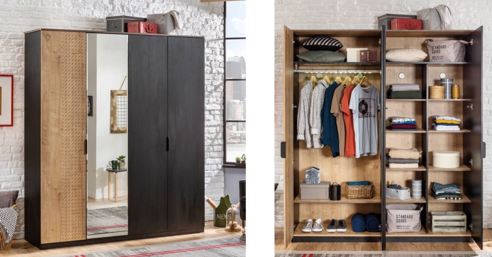 Praktická studentská šatní skříň BLACK čtyřdveřová