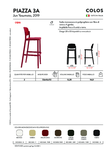 Designovou židli PIAZZA pro italskou značku Colos navrhl Jun Yasumoto. Tento snadno vytvoří retro atmosféru - je inspirován designem kavárenských židlí z třicátých let. Na místo ze dřeva je však židle vyrobena z plastu, přidanou hodnotou je proto univerzálnost - můžete ji umístit jak do interieru, tak do exterieru. Unikátní židle je vyrobena z velmi odoslného plastu a k dispozici je v poměrně široké nabídce ostínů, vybírat můžete z aktuálního vzorníku.