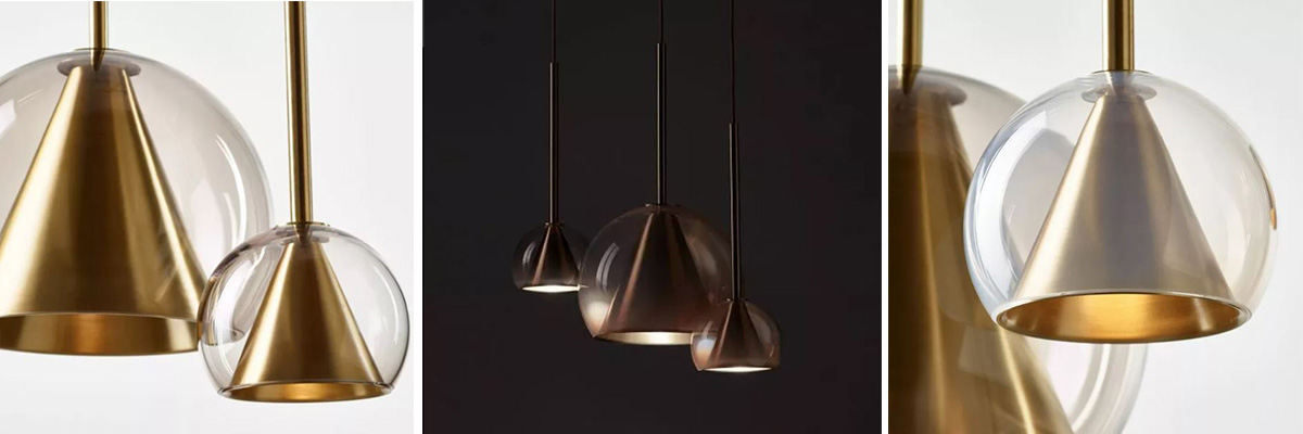 Závěsné svítidlo KONO pracuje s harmonickým dialogem základních geometrických tvarů. Ručně foukaná skleněná koule a vnitřní kužel z mosazi se perfektně doplňují. Jemně tvarované kulovité stínidlo je k dispozici v několika provedeních, od čirého skla přes alabastrově bílou a kouřově šedou až po neutrální barevnou variantu, a vybírat lze také ze třech velikostí. Díky své sochařské eleganci funguje KONO jako výrazný solitér, který interiéru dodá osobitý akcent, stejně tak ale vynikne i ve vzájemné kombinaci několika kusů – například nad jídelním stolem, kuchyňským ostrůvkem nebo ve vstupním prostoru. Svítidlo je zavěšeno na kartáčovaném mosazném držáku s 150 cm dlouhým kabelem potaženým textilií a v prostoru působí jako subtilní světelný šperk.