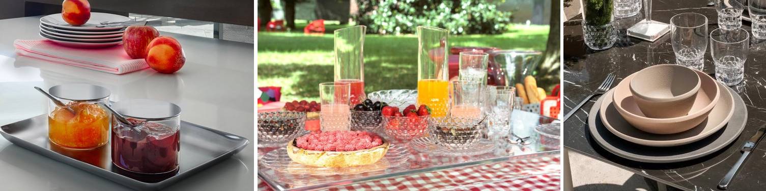 Design celého interiéru kuchyně dolaďují i maličkosti, tedy nádobí a kuchyňské doplňky. V našem katalogu jsme pro vás vybrali například produkty od předního německého výrobce nerezových doplňkůBLOMUS - karafy, minutky, dózy, cukřenky, lžičky, mísy, podnosy a další. Tato značka se dlouhodobě specializuje na „Design pro život" a její výrobky jsou charakteristické užitnými vlastnostmi, vysokou kvalitou, moderním designem a dlouhou životností. V prvotřídní kvalitě a neotřelém designu jsou také další nabízené produkty od renomovaných evropských výrobců, jako jsou SLIDE, REXITE, nebo KARTELL. Čekají na vás jak moderní stylové kousky, tak nadčasové elegantní výrobky v mnoha kombinacích barev i materiálů. Potřebujete poradit s výběrem doplňků a kvalitního nádobí do kuchyně? Stavte se za námi v našem showroomu v Praze!