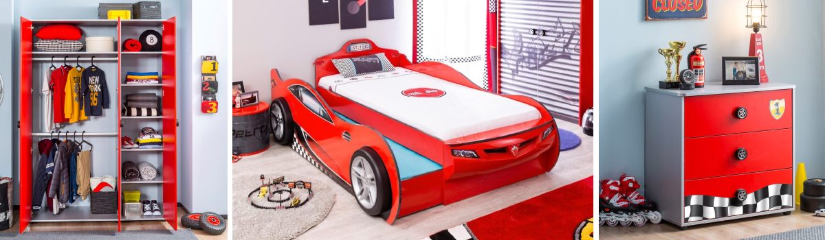 RACEUP je jednou z nejpopulárnějších a zárověň cenově dostupnějších kolekcí pro milovníky závodění. Postel ve tvaru formule, tematicky zpracovaný psací stůl snávstavcem plným úložných polic, šatní skříň, knihovna nebo noční stolek. To pomůže zkompletovat pokojíček snů každého malého kluka. Dojem ještě více dokreslí závěsy a další doplňky. Dopřejte svým dětem stylový pokojíček, který rozvine jejich bujnou fantazii a splní jim sen o pohádkové jízdě životem!
