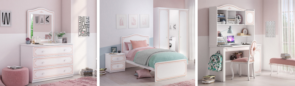 Kolekce SELENA PINK v bílo-růžovém provedení se hodí pro malé i větší princezny. Pohodlná a kvalitní postel v několika velikostech, komody, šatní skříně, psací stůl i noční stolek společně pomohou stvořit pokojíček snů. Tvůrci kolekce mysleli i na dostatek úložných prostor, a tak můžete psací stůl obohatit o nástavec s poličkami. Rodinná značka ČILEK nabízí také neutrálnější variantu kousků v tomto designu SELENA GREY. Jednoduchost, útulnost a eleganci si zamilují nejen malé holčičky, ale i dospívající slečny s romantickou duší. Řada sa může pyšnit produktovou certifikací GS a zárukou 5 let na všechny nábytkové prvky.